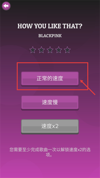 2、进入曲目设置界面,选择红框标注的【正常的速度】选项开启游戏,完成该次游戏后,可解锁【速度x2】的选择权限。