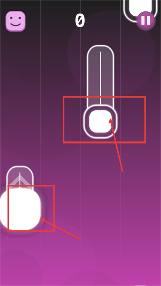 3、游戏过程中,观察红框标注的按钮区域,将下方红框内的元素匹配至上方对应红框位置,完成该节奏操作以累积分数。