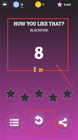 4、游戏结束后看到得分【8】,点击红框标注的重玩按钮,可重新开启【HOW-YOU-LIKE-THAT?】曲目的游戏,再次挑战提升成绩。