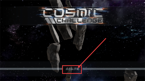 1、进入【COSMIC-CHALLENGE】的启动界面后,点击【点击以开始】按钮开启游戏,这是进入太空竞速挑战的初始操作步骤。