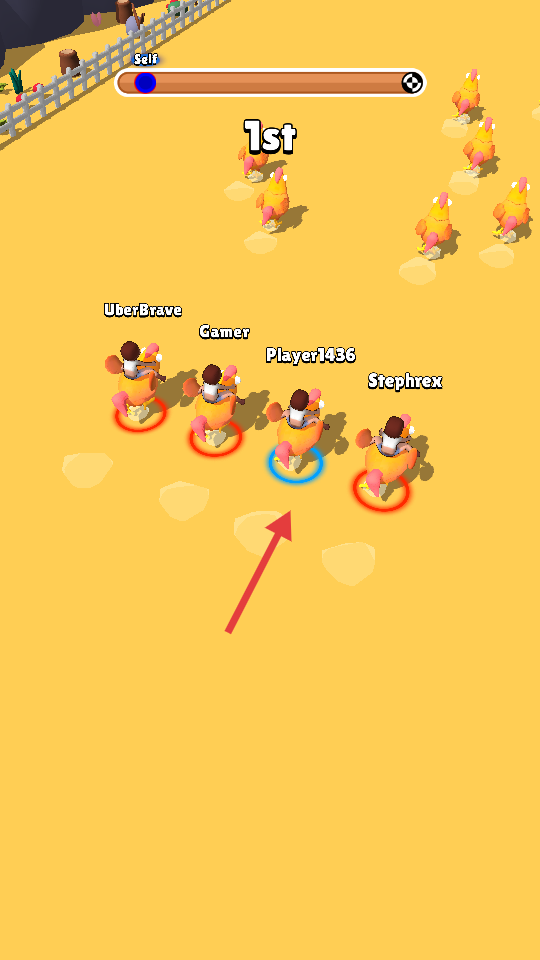 1、操控角色骑鸡在场景内移动,与其他玩家竞技。