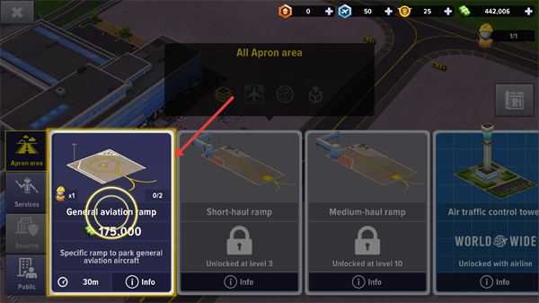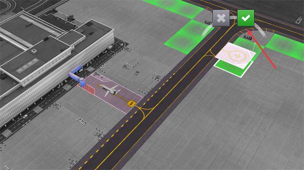 3、选定机场内的绿色可放置区域,确认位置后点击右上角【对勾按钮】。