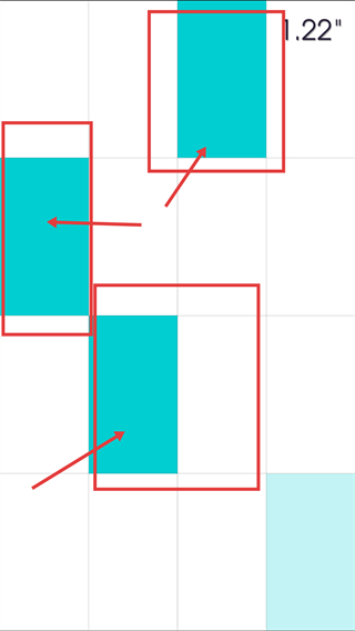2、游戏过程中,定位红框内的蓝绿色块,按箭头指引点击对应色块,推进游戏进度,留意界面显示的【1.22"】时间。
