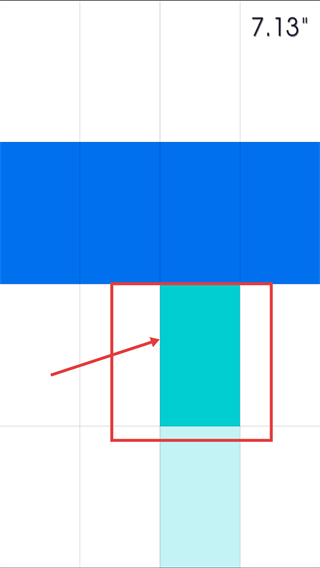 3、继续游玩时,点击红框标注的蓝绿色块,配合界面的【7.13"】时间提示,完成该步骤的色块操作以推进游戏。