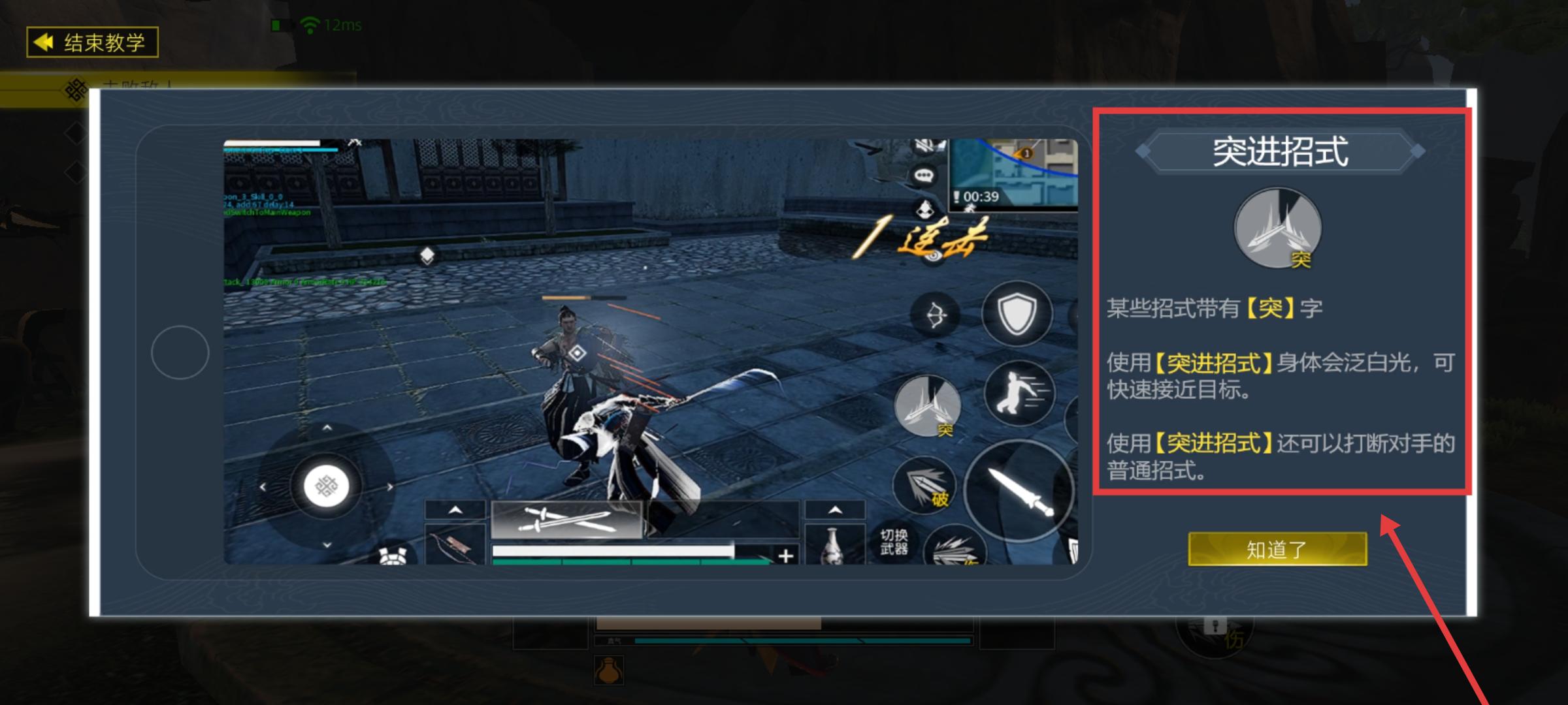 4、学习【突进招式】用法,借泛白光效果快速接近目标,还能打断对手的普通招式。