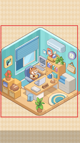 4、完成场景布置后,解锁包含【CEO】标识的办公场景,小浣熊处于对应位置,达成该关卡的布置目标。