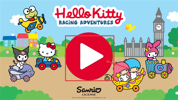 1、界面显示【Hello-Kitty-Racing-Adventures】标识,点击标注的红色播放按钮进入游戏,开启赛车冒险的关卡玩法,推进游戏流程。