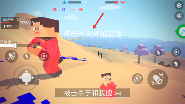 4、若战斗中被击杀,界面会提示“点击开火开始复活”,点击开火按钮即可复活并重新参与战斗。