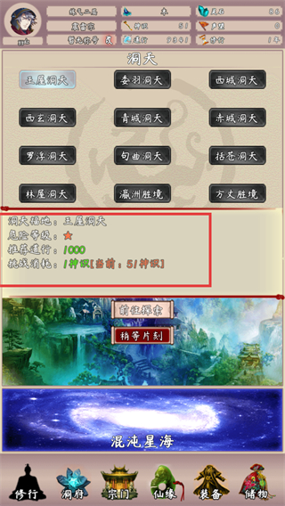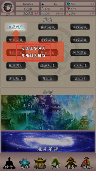 4、挑战【王屋洞天】消耗神识,完成挑战可提升修为并获取仙缘奖励助力修仙。