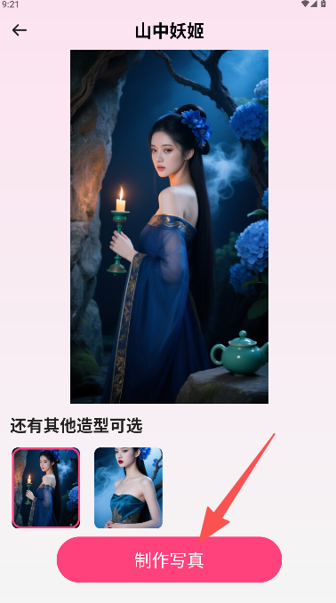 3、在造型详情页点击粉红色“制作写真”按钮完成生成。