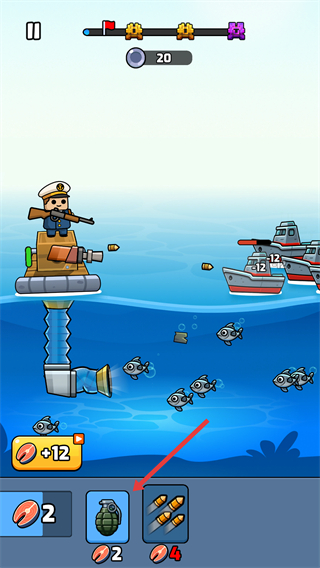 4、消耗积累的食物资源启用【炮弹】道具,强化对敌方船只的攻击效率推进关卡进程。