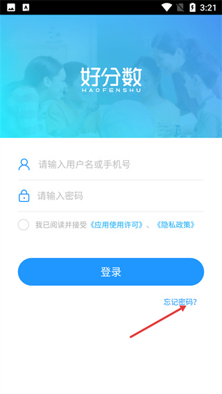 1、进入【好分数】登录页面,点击页面右下角的【忘记密码?】选项,启动密码找回流程。