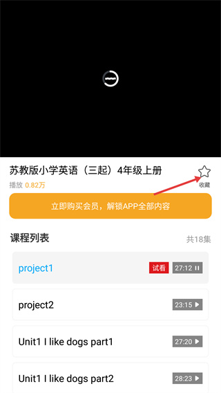4、进入课程详情页,可试看部分内容,点击【收藏】按钮保存该课程。
