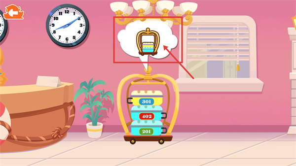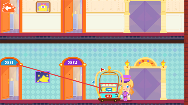 3、把行李车运送至标有【301】的房间位置,完成该房间的行李配送,持续推进服务任务的进度。