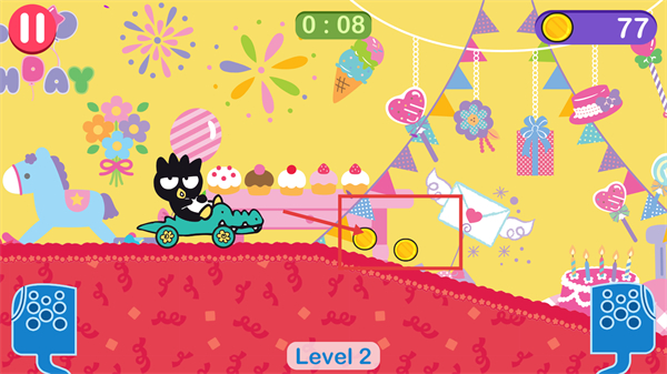 凯蒂猫飞行冒险2最新版是一款充满少女心的休闲闯关游戏,以经典三丽鸥IP为核心,玩家可化身凯蒂猫玉桂狗布丁狗等角色,驾驶专属赛车在糖果色彩搭建的赛道上行驶,翻越山坡展开跑酷冒险。游戏内置丰富关卡与精彩剧情任务,每个关卡都有独特挑战,赛道上散落大量金币与道具,还能解锁多款角色及酷炫赛车皮肤。