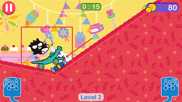 3、在【Level-2】中操控车辆爬坡,留意赛道坡度避免打滑,此时右上角【金币-80】,稳定车辆状态继续推进。