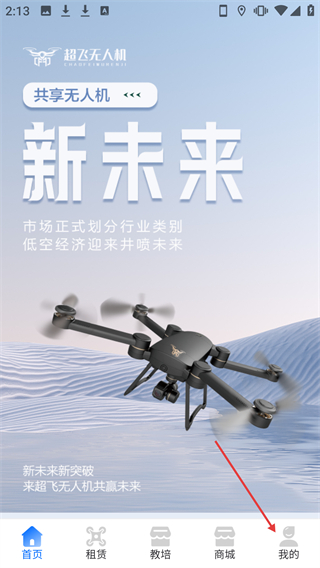 1、在【超飞无人机】的【首页】点击底部的【我的】,进入个人页面。