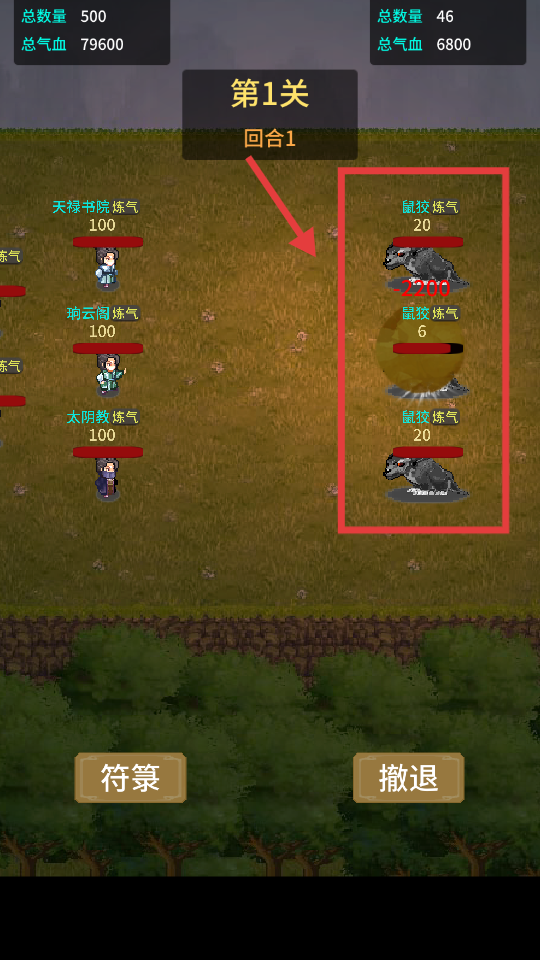 4、进入战斗,与敌人对战,战斗界面可查看双方总数量、总气血。