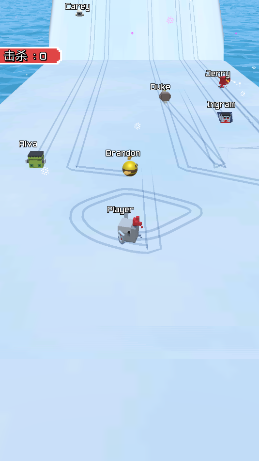 3、需把其他小雪人撞击入海里,撞击一个得一分,游戏最后场上最高得分者获胜。