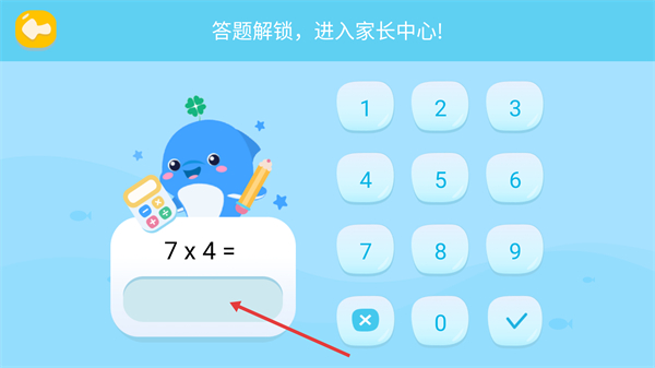 2、遇到【答题解锁-进入家长中心!】环节,需完成算式题,比如计算【7×4】,得出结果后在输入框填写并确认。