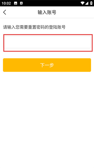 3、进入输入账号页面,在输入框中填写需要重置密码的登录账号,准备进行密码重置的下一步操作。