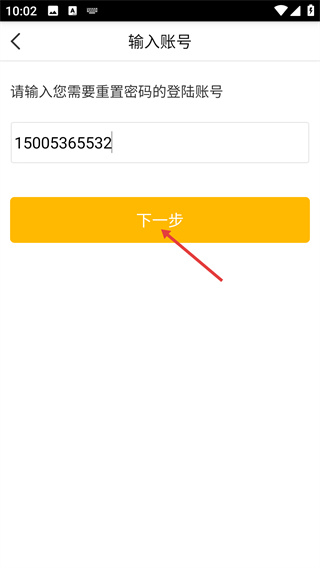 4、在输入账号页面填写完对应的登录账号后,点击【下一步】按钮,继续推进密码重置的流程。