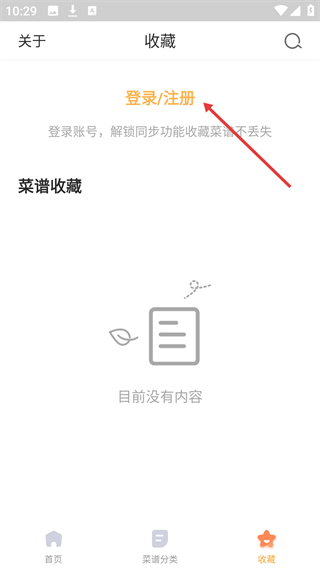 2、进入收藏页面后,可见【登录/注册】选项,提示登录可解锁同步功能。