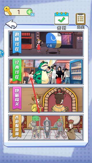 1、整体画风简约独特,玩法直观且富有吸引力,能够迅速将玩家带入沉浸式的找茬挑战情境之中。