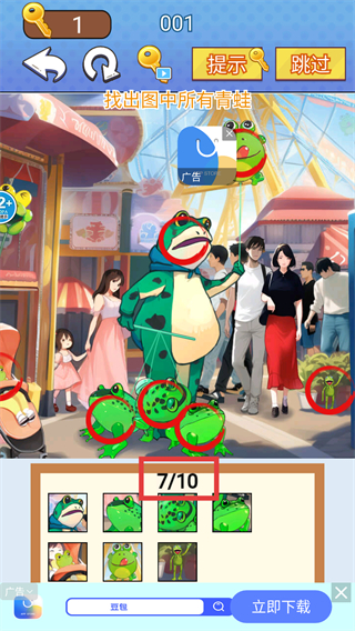 4、点击画面中出现的青蛙,累计找到目标数量,完成该关卡的找茬任务。