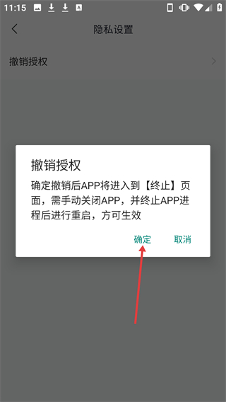3、在【隐私设置】页面中点击【撤销授权】选项,弹出撤销授权的确认弹窗。