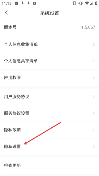 2、在【系统设置】页面中点击【隐私设置】选项,进入隐私设置页面。