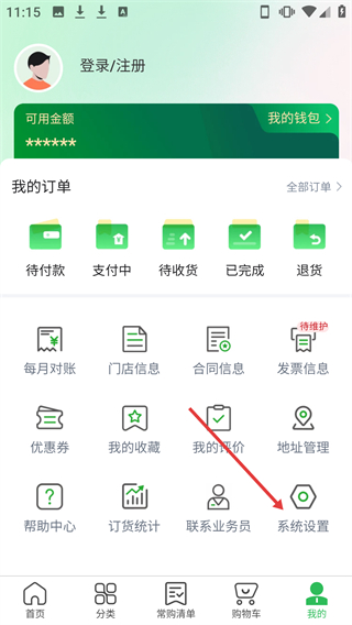 1、在【我的】页面中点击【系统设置】选项,进入系统设置页面。
