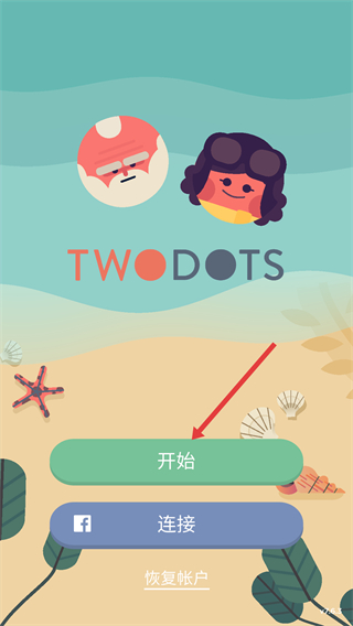 1、点击界面中的【开始】按钮,进入【Two-Dots】的关卡挑战,准备进行连线消除操作。