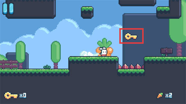 3、继续移动兔子,收集场景中的【钥匙】道具,同时注意躲避陷阱,推进关卡进度。