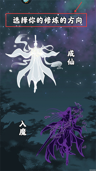 1、进入游戏先选修炼方向,成仙侧重正道修炼易获宗门资源,入魔则能快速提升战力适合斩妖除魔。