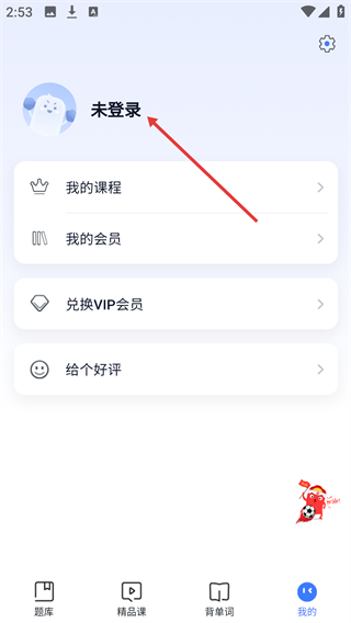 2、进入【我的】页面后,可见当前处于【未登录】状态,按箭头指引去登录。