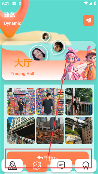 3、在动态大厅页面,看到感兴趣的动态可以点击下方的【寻找TA】按钮,就能和发帖人进行聊天啦。