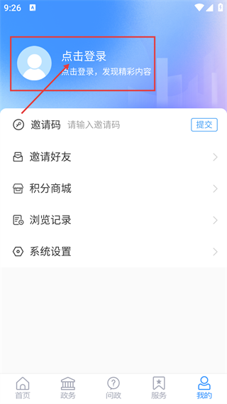 2、在个人页面中,点击【点击登录】区域,可进入账号验证界面,解锁更多软件功能权限。