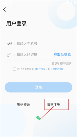 3、在【用户登录】界面,若为新用户,点击【快速注册】选项,即可进入注册流程创建账号。