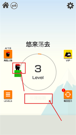1、看到【悠来荡去】的【Level-3】界面,选择红色框选的角色,点击【开始起跳】按钮,进入该关卡的摆动挑战环节。