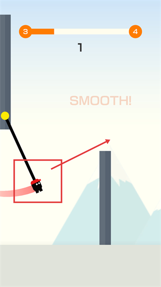 2、进入关卡后,操控红色框选的角色,按箭头方向荡向右侧柱子,完成摆动衔接,界面显示【SMOOTH!】推进进度。