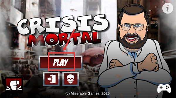 1、在【CRISIS-MORTAL】启动界面,点击【PLAY】按钮,即可进入游戏的对战场景,开启该格斗类游戏的游玩进程。