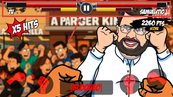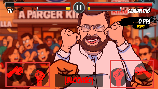 2、进入对战界面后,操作界面中的【拳头】按钮发起攻击,同时留意【BLOQUEO】(格挡)状态,保障自身对战节奏。