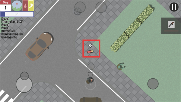 4、消灭完僵尸后在场景中找到【盒装物品】并收集,补充生存物资库存,推进【Day-1】的生存进度。
