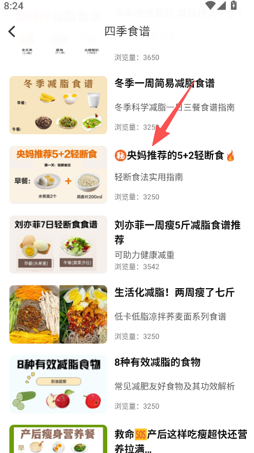 1、提供四季食谱浏览功能,点击对应板块,查看四季交替的各类健康饮食及减脂食谱内容。