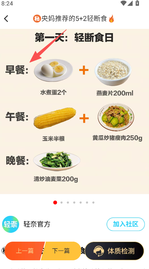 《轻奈》是一款健康饮食类软件。设四季食谱板块,含专家营养师1V1定制饮食方案,提供四季交替的定制食谱,展示各类减脂餐、轻断食食谱(含三餐具体安排),标注食谱浏览量,还支持加入社区、体质检测,适配健康饮食、减脂饮食的方案获取与执行参考需求。