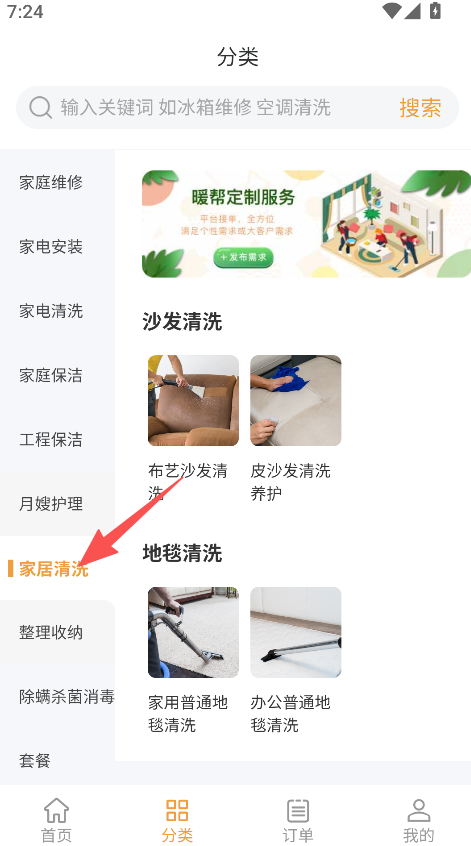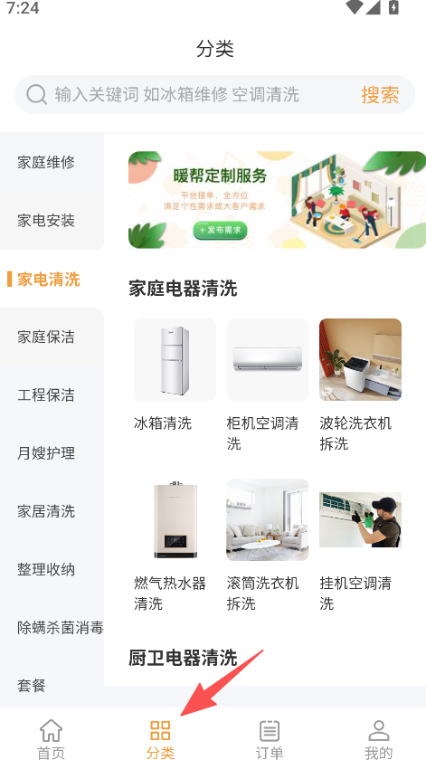 2、提供暖帮定制服务,适配个性需求与大客户需求,同时细分服务项目(如家电家居清洗),便于精准选择所需服务。