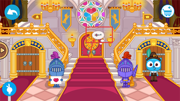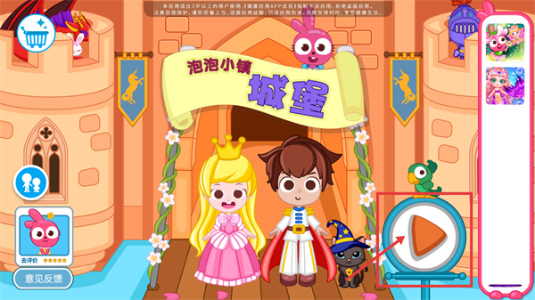 1、看到【泡泡小镇城堡】界面,点击红色框选的播放按钮,进入城堡主题探索关卡,开启本次城堡场景的互动挑战。