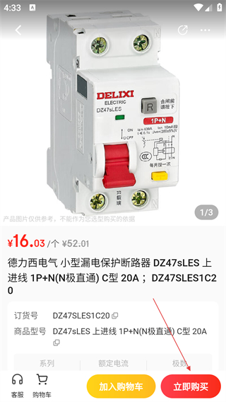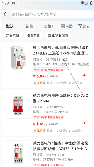 2、在分类页选择【断路器】,可查看该类别的商品列表。