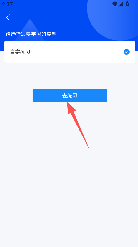 1、打开洛阳学车,选择自学练习类型点击去练习。